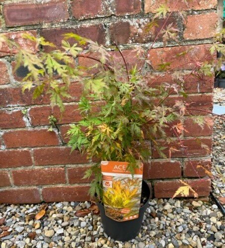 This Japanese maple is deciduous and slow growing with an upright growing habit. It will develop into a small tree making them suitable for both smaller and larger gardens. Acers are known for their leaf colour and this variety has yellow leaves in spring, turning green in the summer to bright orange in autumn. Acers grow best in partial shade sheltered from strong winds and should be kept moist but well drained. They are also suitable for gardens with clay soil and can be grown in pots or in the ground.