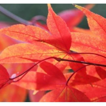 The Acer Palmatum Ozakazuki is a large deciduous shrub with a round habit. Leaves are relatively large, 7-lobed, green but turning to brilliant orange/scarlet in autumn.