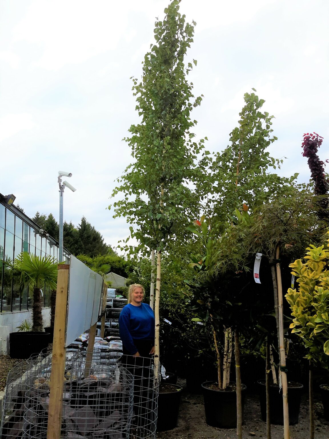 This is a magnificent large specimen Betula Alba, also known as white birch. It is a fast growing deciduous tree that has a peeling papery bark. Birch trees like to be in moist ground and will grow well in clay soils.