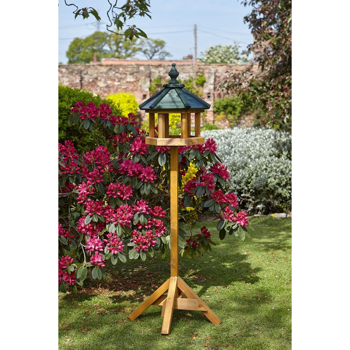 • Height 165cm • Attractive, hexagonal shaped roof finished in forest green • Contrasting roof and finial adds a decorative touch • The perfect bird table to complement any garden