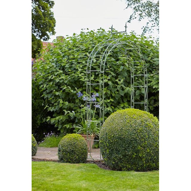 An intricate design with rounded top section with twin finials • Sturdy steel with bottom frame to aid structural support • Looks lovely with roses, clematis or any climbing plants.