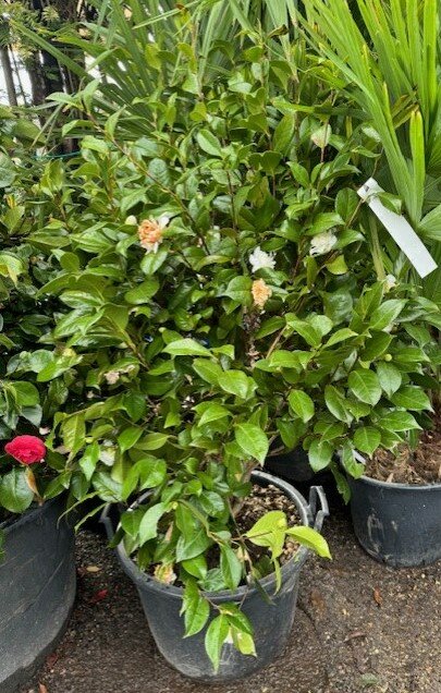 Camelia is an evergreen shrub with dark green glossy leaves and large white flowers in spring. They require acid soil so they should be planted with ericaceous soil and fed with ericaceous plant food from March-October. Camelia's grow best in shade, although they can have some sun later in the day. If they are planted in a position where they get the early morning sun they won't flower as the sun hitting any frost on the buds and flowers will damage them and cause them to drop off.