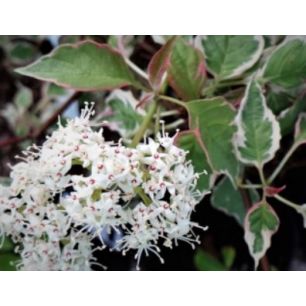 This is a fairly fast-growing silver pagoda dogwood small tree grown onto a cane. It has marginal decorative leaves of pink in several shades.