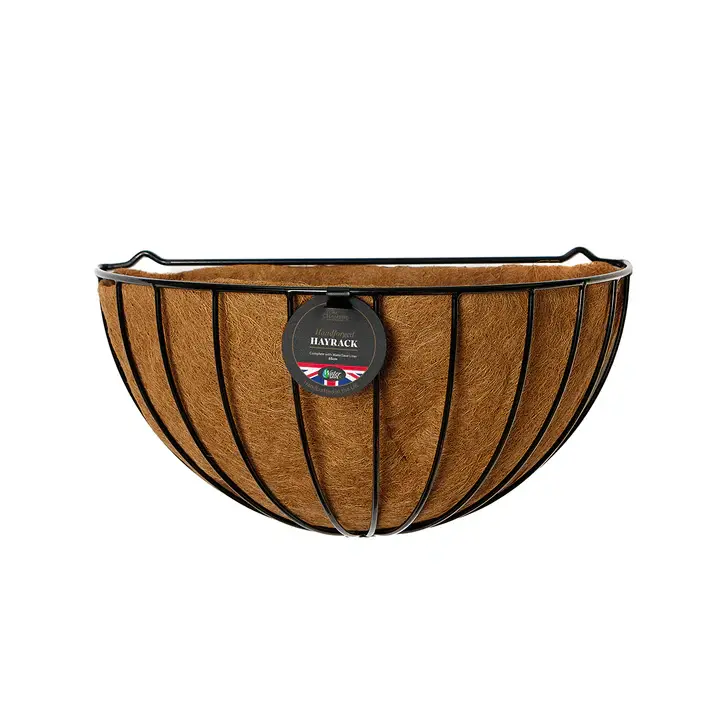 Hayracks and hanging baskets are hand forged from heavy-duty steel. Engineered to the finest standards, all Tom Chambers baskets feature hammered finish rims and decorative, twisted front bars.