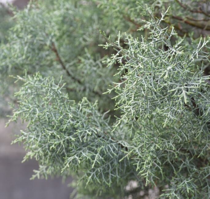 Cupressus Arizonica Fastagiata is an evergreen conifer with a narrow conical growing habit. Its foliage is silvery-blue and in spring they produce small yellow cones. This conifer has been clipped into tight pom poms creating a Bonsai effect. Control size with regular clipping.