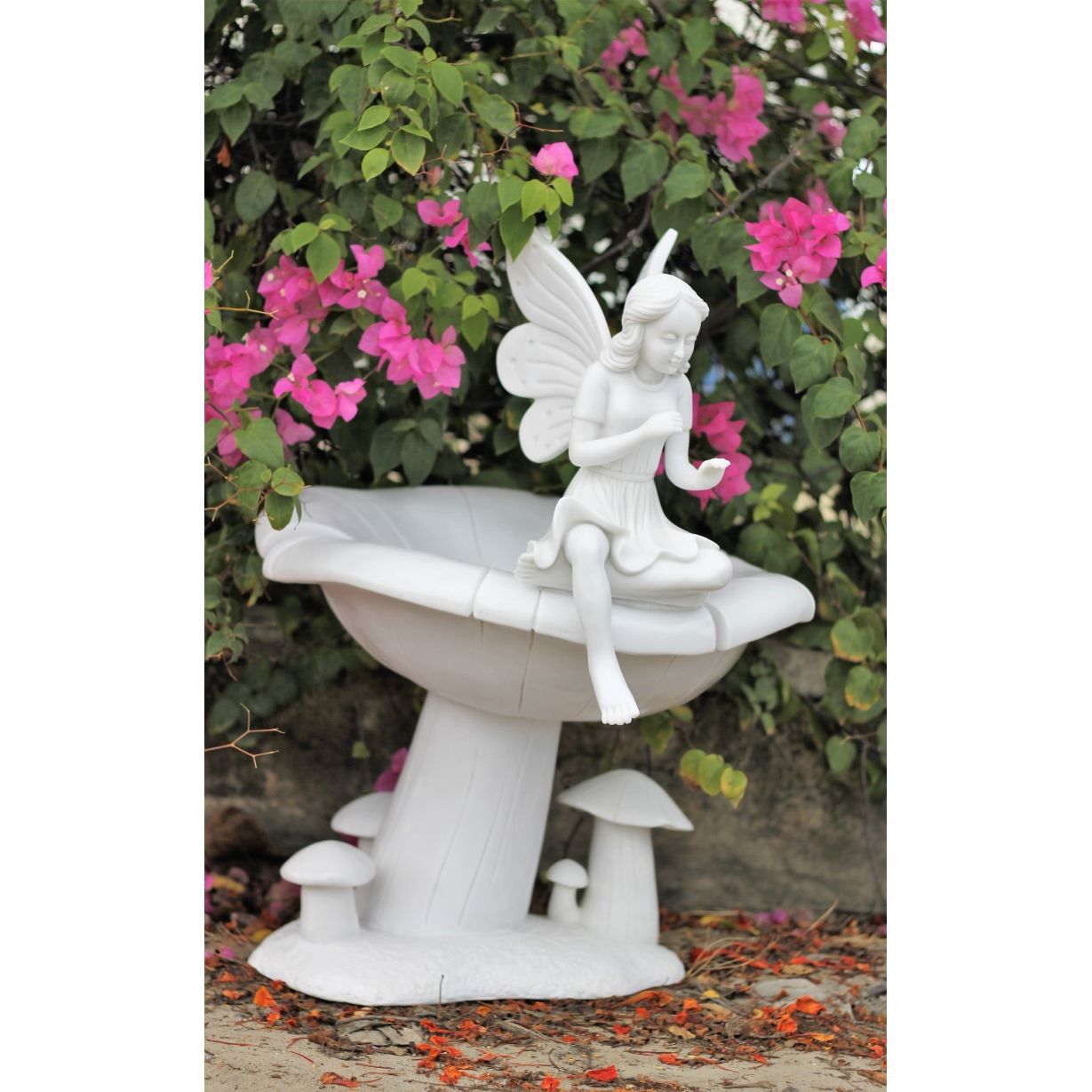 Sitting elegantly on a large upturned toadstool, this fairy will be sure to delight your senses • Hand finished • Will grace any garden or patio space • Durable and frost resistant • Easy to clean