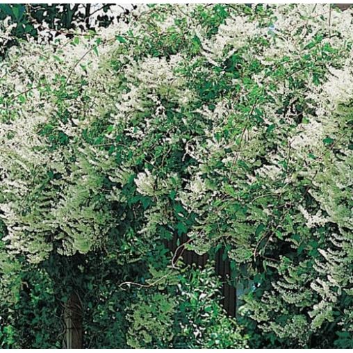 Also known as Russian Vine or Mile a Minute, Fallopia is a very fast growing vigorous climber that gets small white flowers from July-October. They are also deciduous and can be pruned in spring.