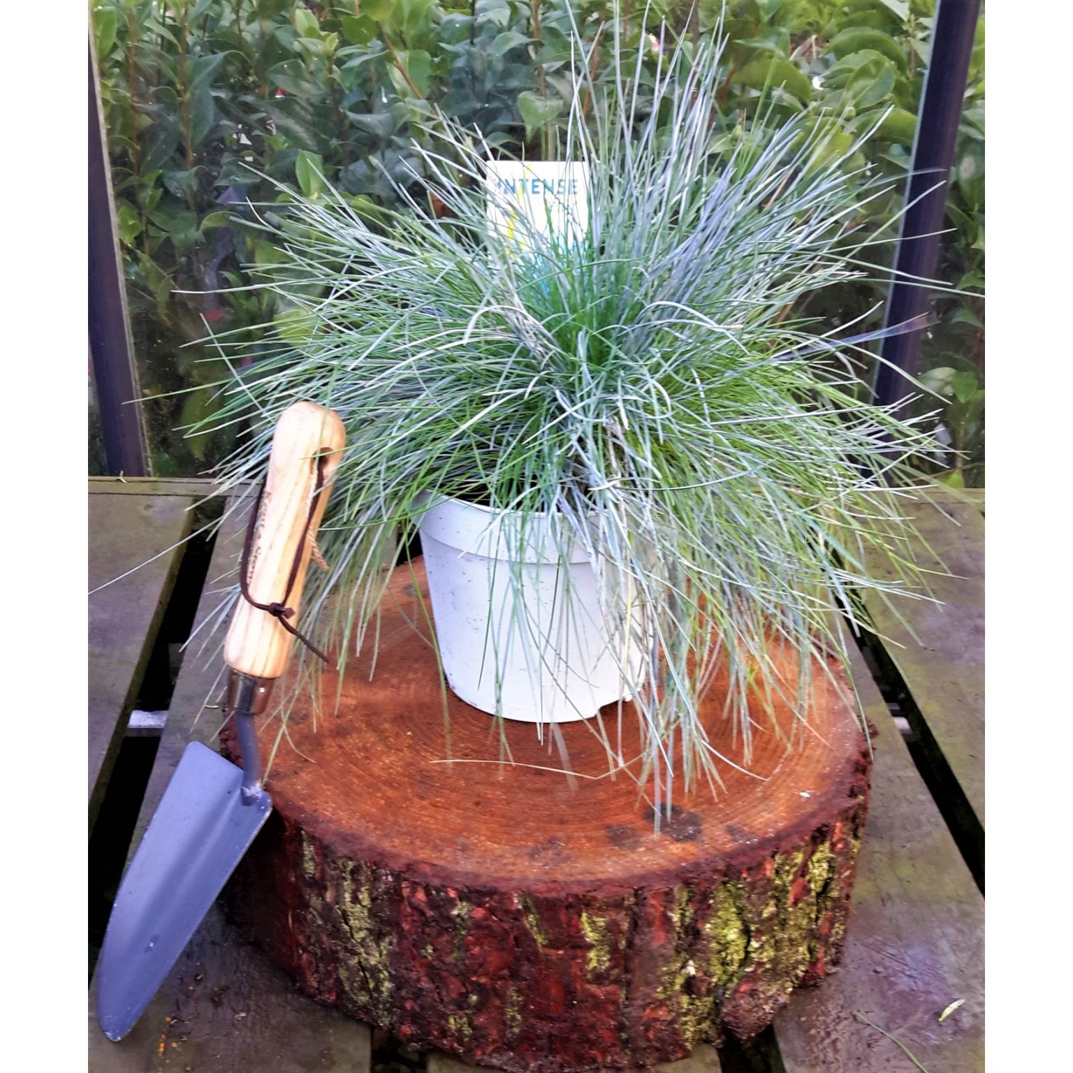 With its bright silvery blue colour this ornamental grass would stand out in any garden. In summer the grass produces blueish green plumes to match its foliage. Festuca are evergreen and to keep them tidy for the winter the old leaves can be easily removed by running your hands through the foliage.