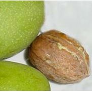 Julgans Regia is a common walnut tree. It produces catkin flowers in March-May and edible walnuts from July-October once the trees have reached a maturity of around three years. The walnuts can be picked early while they are still green to be pickled or if left until autumn they can be dried and stored.