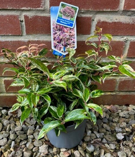 Leucothoe Makijaz is a bushy evergreen shrub giving interest to the garden all year round. This variety has mottled green and creamy leaves with new shoots appearing in shades of pink and bronze in spring. These leaves then turn burgundy red in autumn. They have small white flowers in the spring.