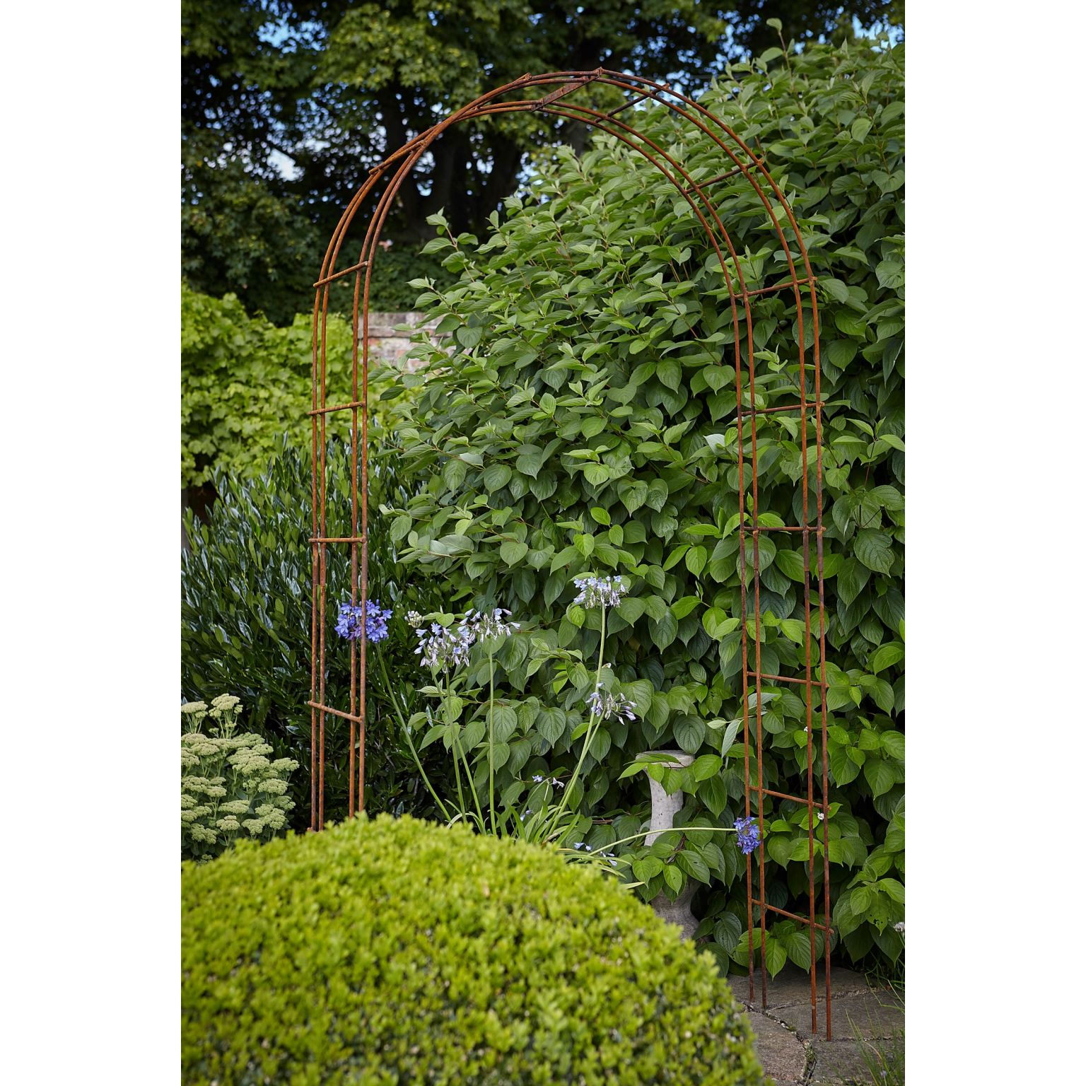 Handcrafted from heavy duty bare metal • Designed to rust naturally over time • A traditional shaped arch with decorative lattice steel work.