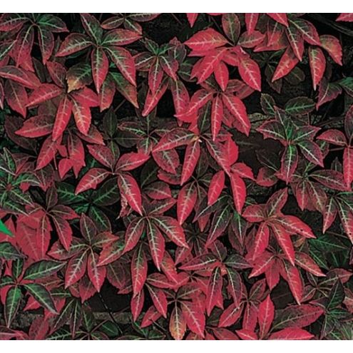 This is a fast growing deciduous climber also known as Virginia creeper. This variety has dark green leaves with a bronze tint and a silver vein running through the leaf. In autumn the leaves turn a reddish shade and the plant produces small dark blue berries. These climbers will thrive in sun or shade and will grow well in clay soil.