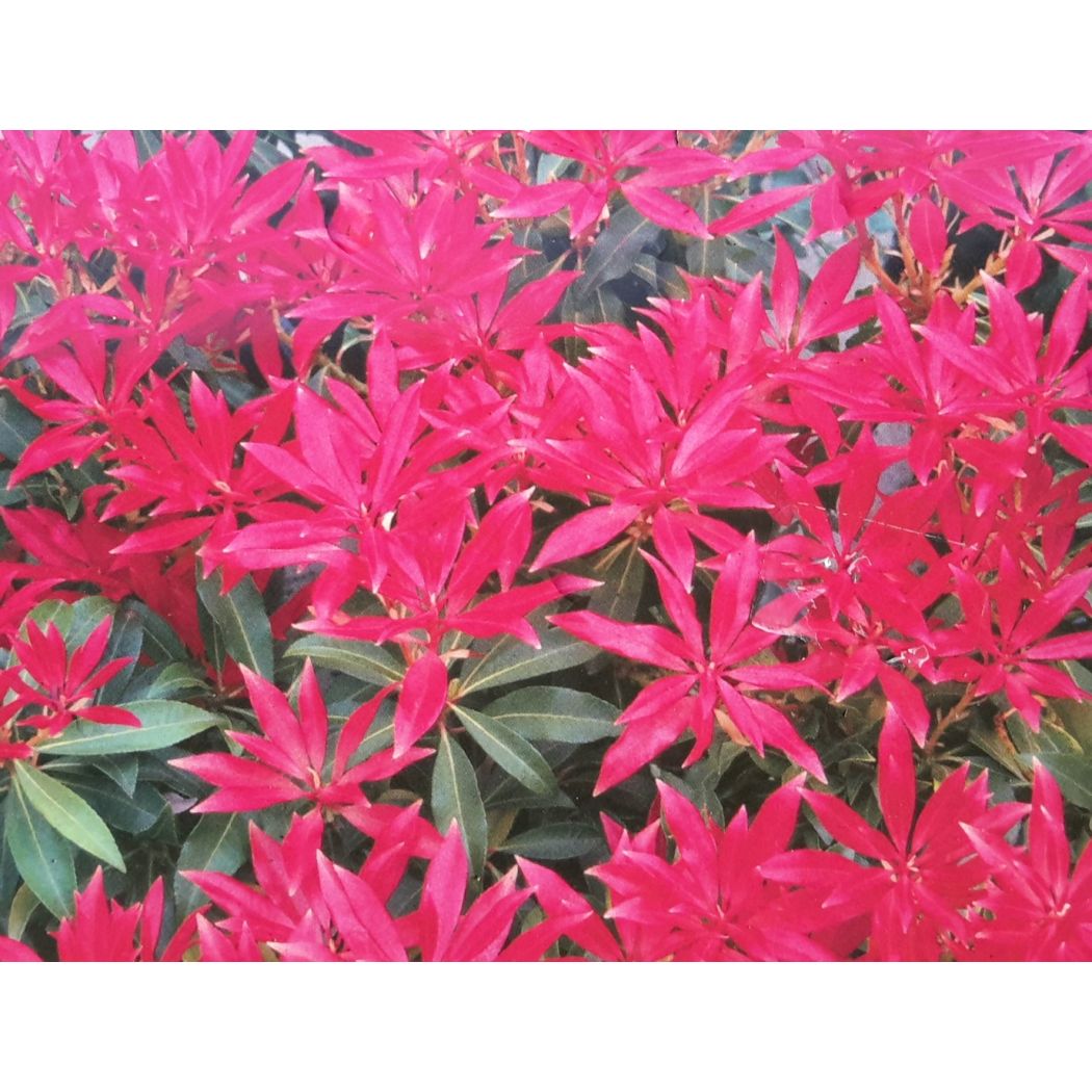This variety of Pieris is evergreen with an upright compact growing habit. The new growth on this shrub appears vibrant pink and red which darkens as it matures. In spring attractive delicate urn shaped white flowers are produced that hang down from the plant in clusters. Pieris need acidic soil so should be planted with ericaceous compost or fed with ericaceous feed.