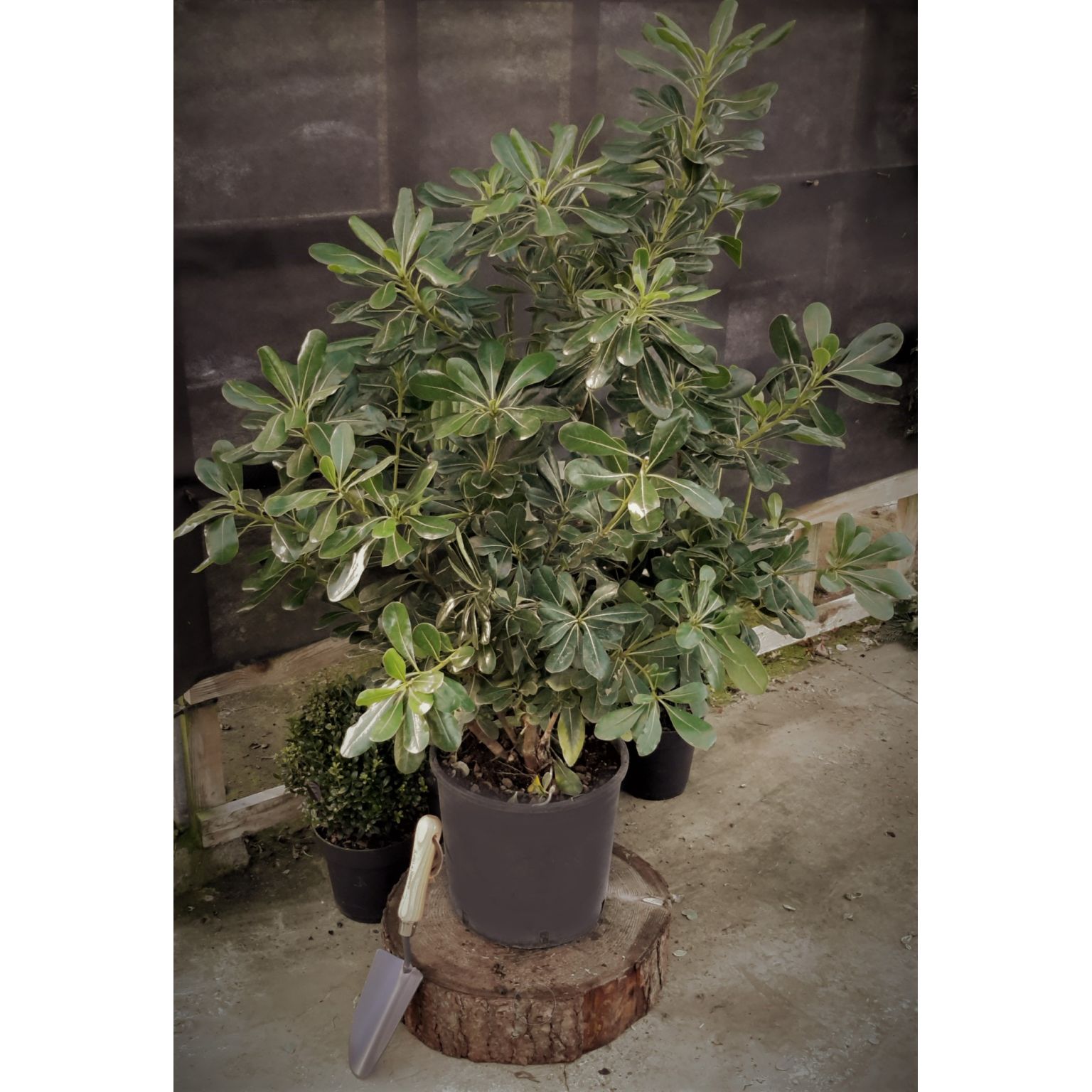 Pittosporum Tobira is a slow growing evergreen shrub with attractive deep green glossy leaves. In spring and summer they produce scented white flowers that turn to yellow. This variety can be frost tender so in more severe winters they should be lifted inside for protection.