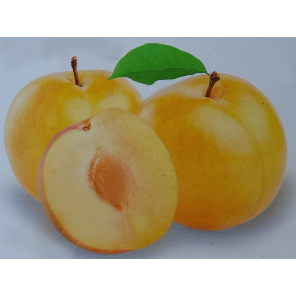 This is a dwarf plum tree also called golden gage, producing yellow fruits that are ready to pick in August and September. Plums grow best in full sun and produce attractive white flowers in the spring followed by their fruit. These trees are deciduous and have been grafted on to a clear stem of 45cm meaning the stem will not get any taller but the tree above the graft will continue to grow and develop. Dwarf fruit trees are suitable to plant directly in to the ground or they can be grown in pots.