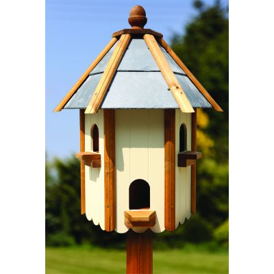 • Height 240cm - - the tallest in our range • Heritage cream painted wood • Contrasting wooden perches • Decorative scalloped edging • Extra heavy duty cross base
