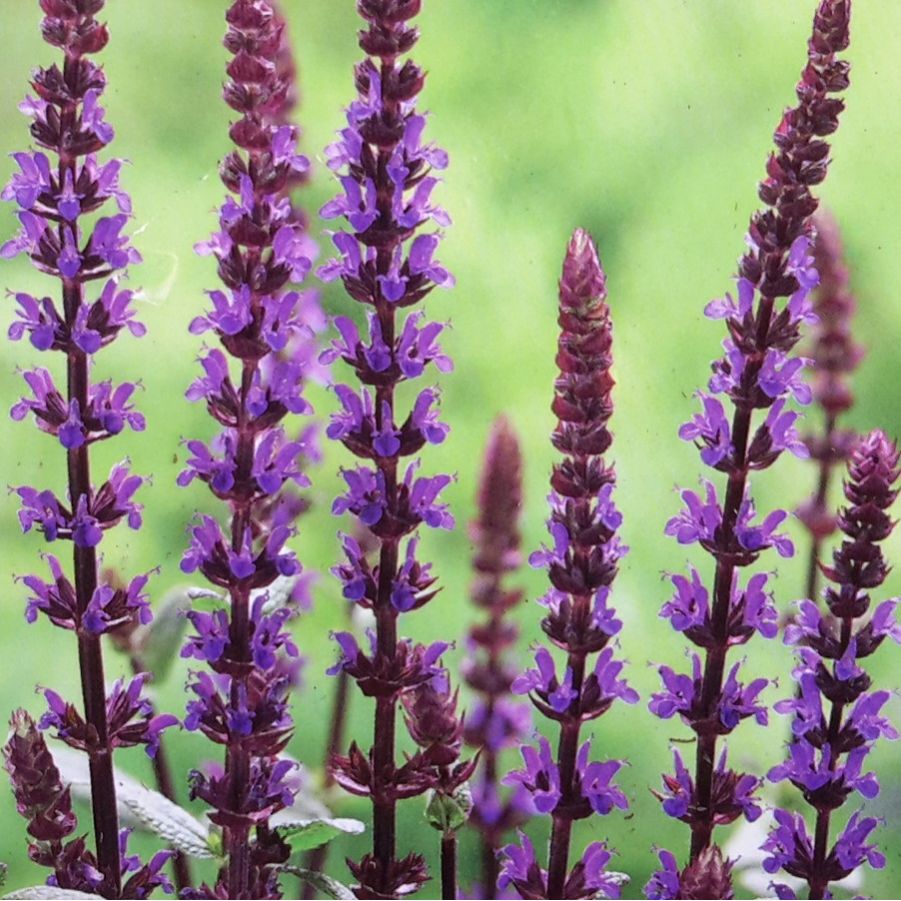 Salvia Caradonna is a clump forming perennial that has aromatic foliage as it is related to the sage family, although this plant is not edible. They produce purple flower spikes throughout the summer. Once the first flowers of the season have died back, the plant can be cut down to a few inches and it should come again to give another flush of flowers. Salvia are drought tolerant.