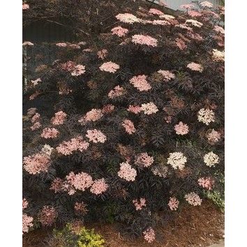 Sambucus Black Lace is an attractive deciduous ornamental shrub. Its elegant leaves are deep purple-black and in summer they produce flat white and pink clusters of flowers that are a stunning contrast to the foliage. These flowers are followed by black-red berries that are loved by birds. These berries can also be used once ripe to make wine.