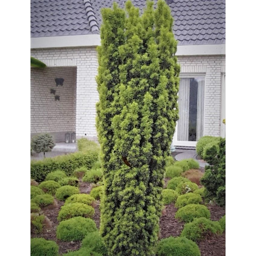 Taxus Fastigiata David, otherwise known as English Yew is a slow growing dense evergreen conifer that has a narrow form. Its foliage is green with golden edges that will keep its colour throughout the year. This is a very low maintenance plant that doesn't require any clipping or pruning. They grow well in both clay or sandy soils and can be planted into pots or as a statement piece into a border. It looks great throughout the winter giving structure to the garden all year round.