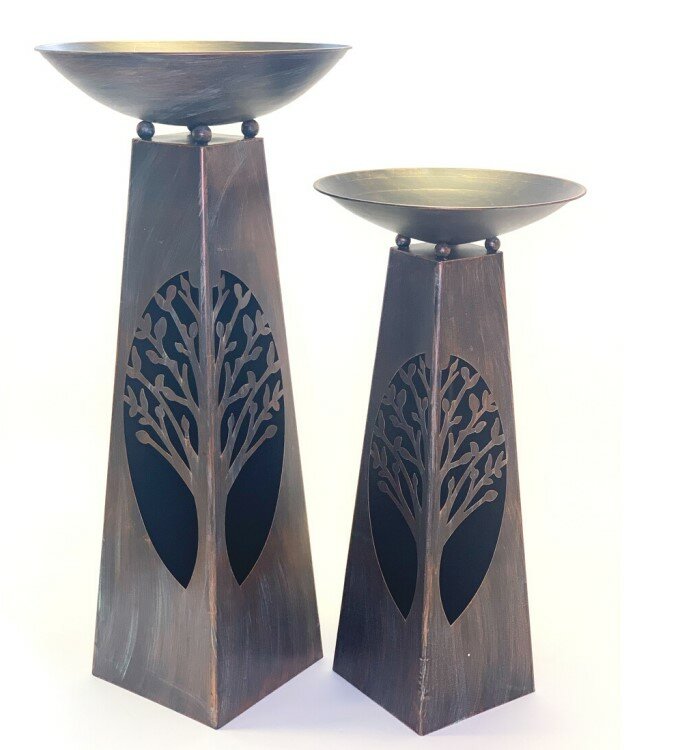 This metal tower and bowl set can be used either indoors or outdoors to hold potted plants, flower arrangements, as a bird bath, a log burner or as a base for a solar lamp - the choice is yours! A functional ornament with a quirky decorative touch that will add style to any garden/conservatory setting.
