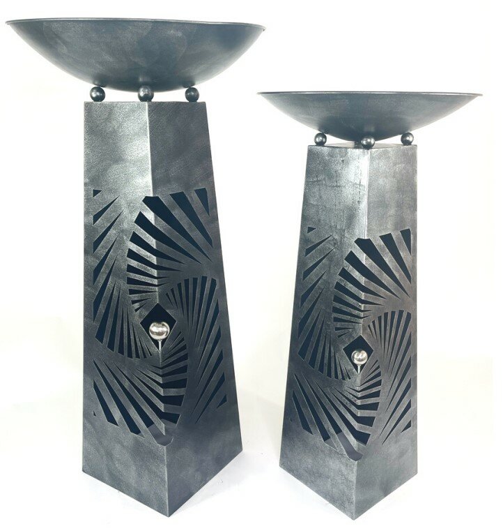 This metal tower and bowl set can be used either indoors or outdoors to hold potted plants, flower arrangements, as a bird bath, a log burner or as a base for a solar lamp - the choice is yours! A functional ornament with a quirky decorative touch that will add style to any garden/conservatory setting.
