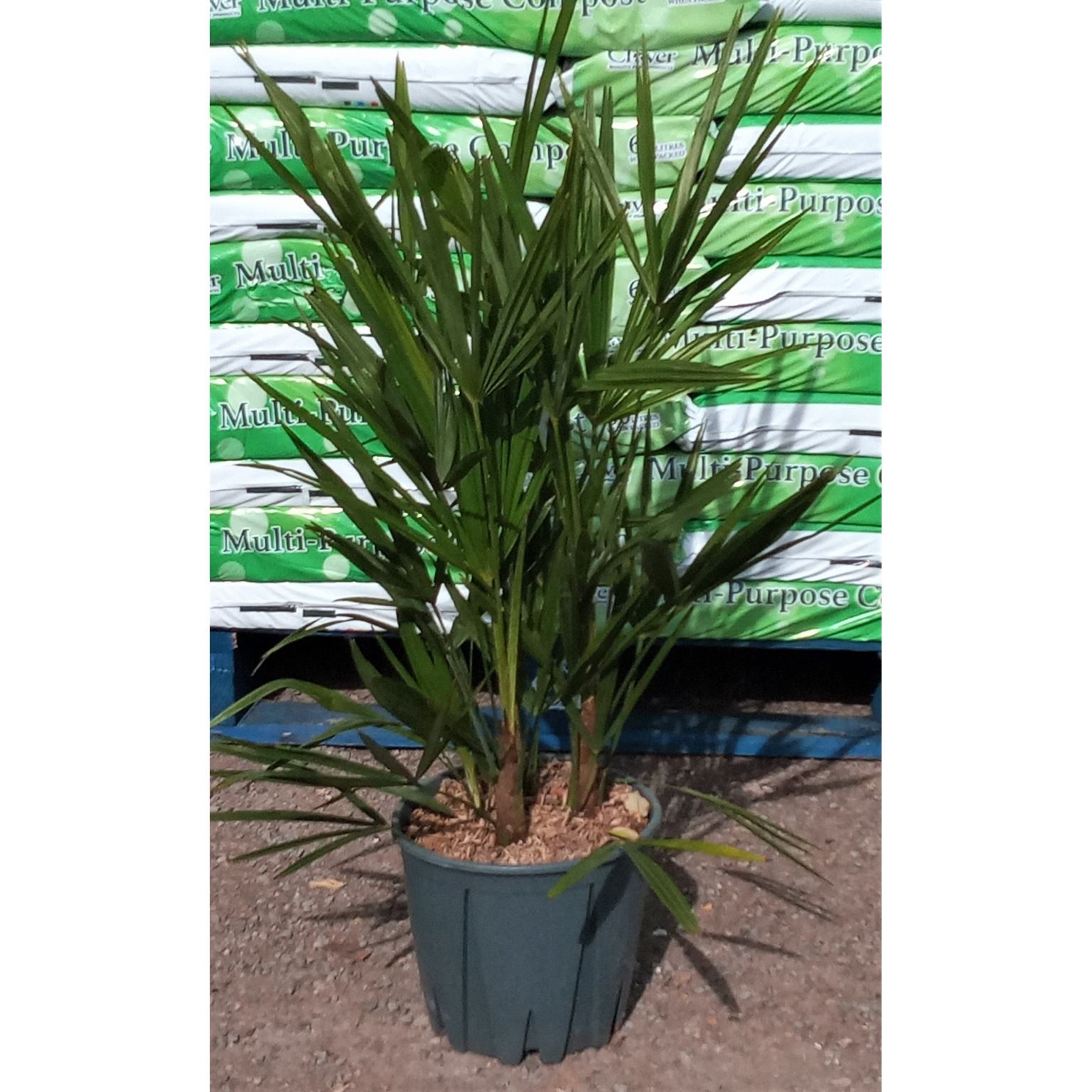 Trachycarpus Fortunei are a slow growing exotic hardy evergreen palms. They form a thick fibre covered trunk, with deep green fan shaped leaves that grow from the crown. As the outer leaves die off they should be cut off at the end of their stems and this is how the trunk develops. New leaves will appear again from the centre.